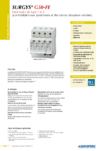 Le parafoudre SURGYS G50-FE est conçu pour assurer la protection de vos installations de distribution basse tension et de vos équipements électriques. Il agit contre les surtensions de manoeuvres industrielles et celles dues à la foudre. Ce type de parafoudre est particulièrement recommandé en cas de risque d’impact direct de foudre, au niveau du TGBT comportant de l’électronique sensibles aux surtensions.