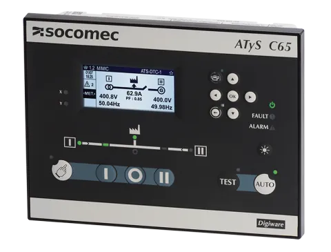 | Description | Le contrôleur ATSE avec communication ATyS C65 switching type I-0-II fonctionnalités avancées peut être utilisé pour piloter un commutateur de transfert télécommandé, tel que ATyS r, ATyS S et ATyS d M |