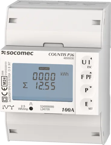 | Description | Compteur d’énergie active modulaire COUNTIS P36 certifiés MID Triphasé - direct 100A, ports électriques de type M-BUS, totalement intégrés à l'écosystème SOCOMEC comprenant : Webview/écrans/passerelles/logiciel de configuration |